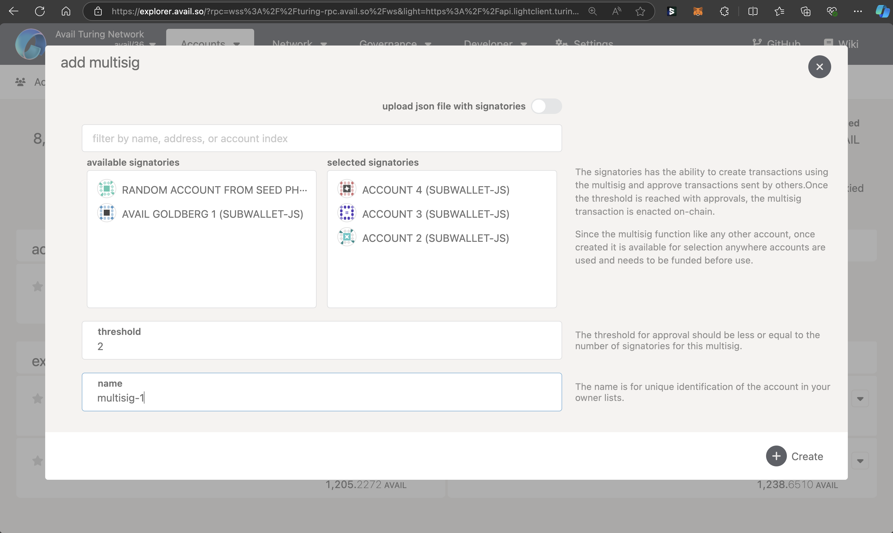 Create a multisig wallet on Avail DA