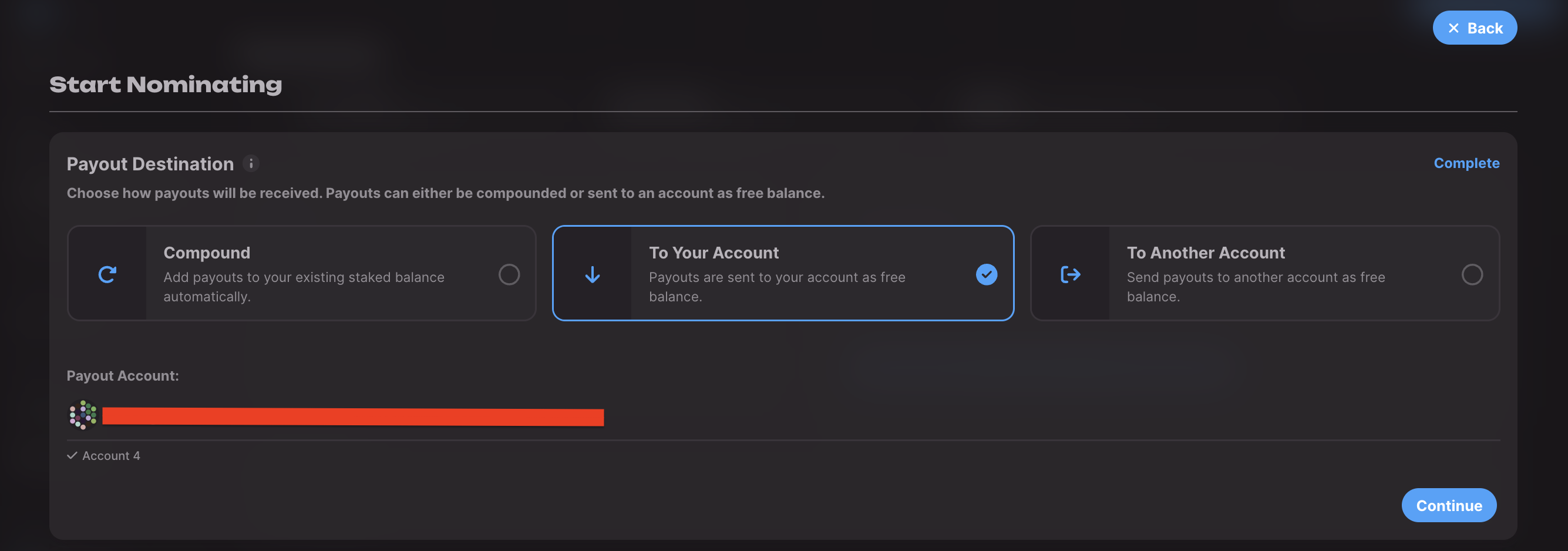 • To Your Account: This will send your rewards to the account you used to stake.